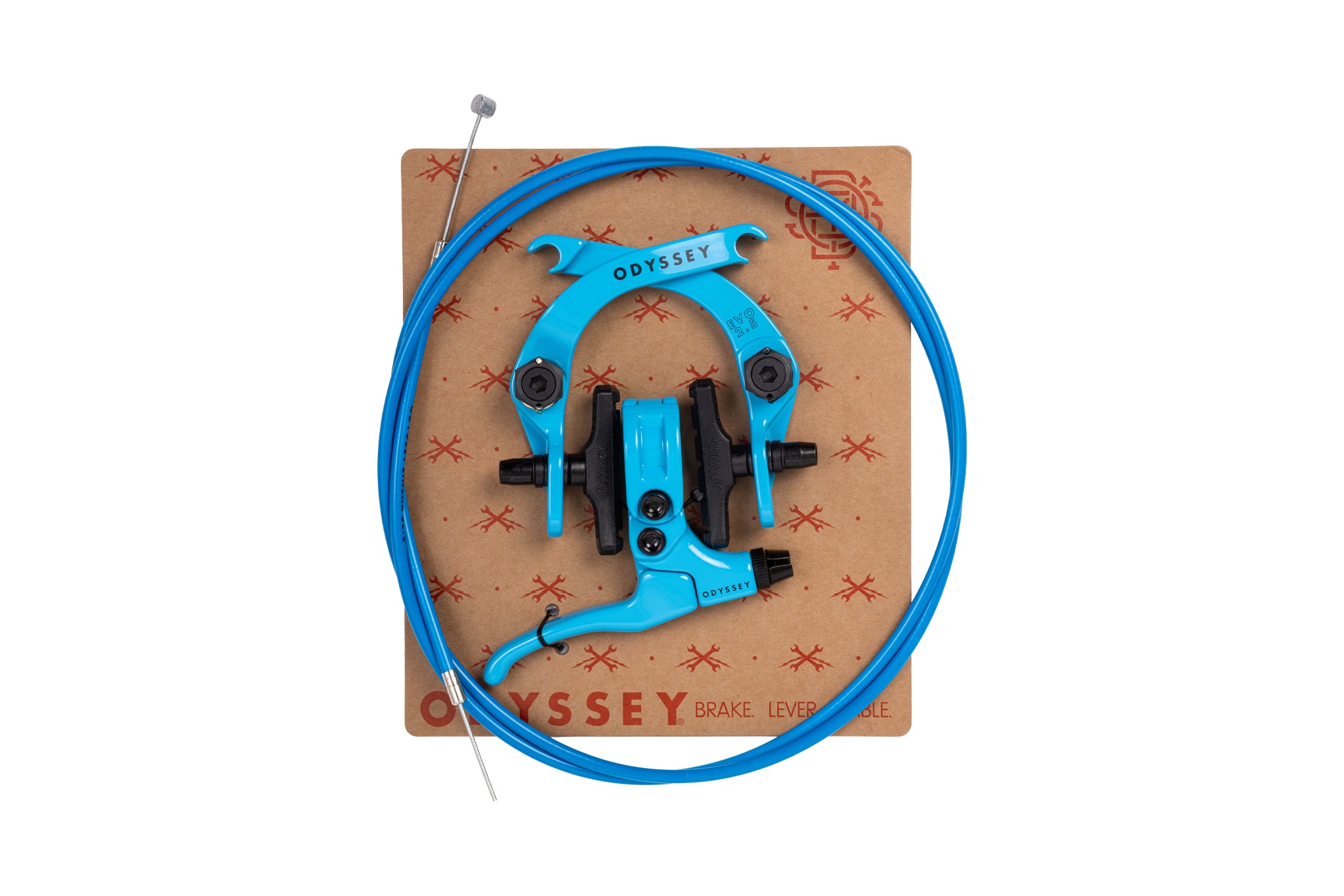 Comes with Odyssey’s convenient double lugged straddle cable, custom curved cable hanger and an array of hardware for adapting the brake to every possible set-up. Forged from aluminum for strength, and to avoid unnecessary upcharges from frivolous CNC machining.