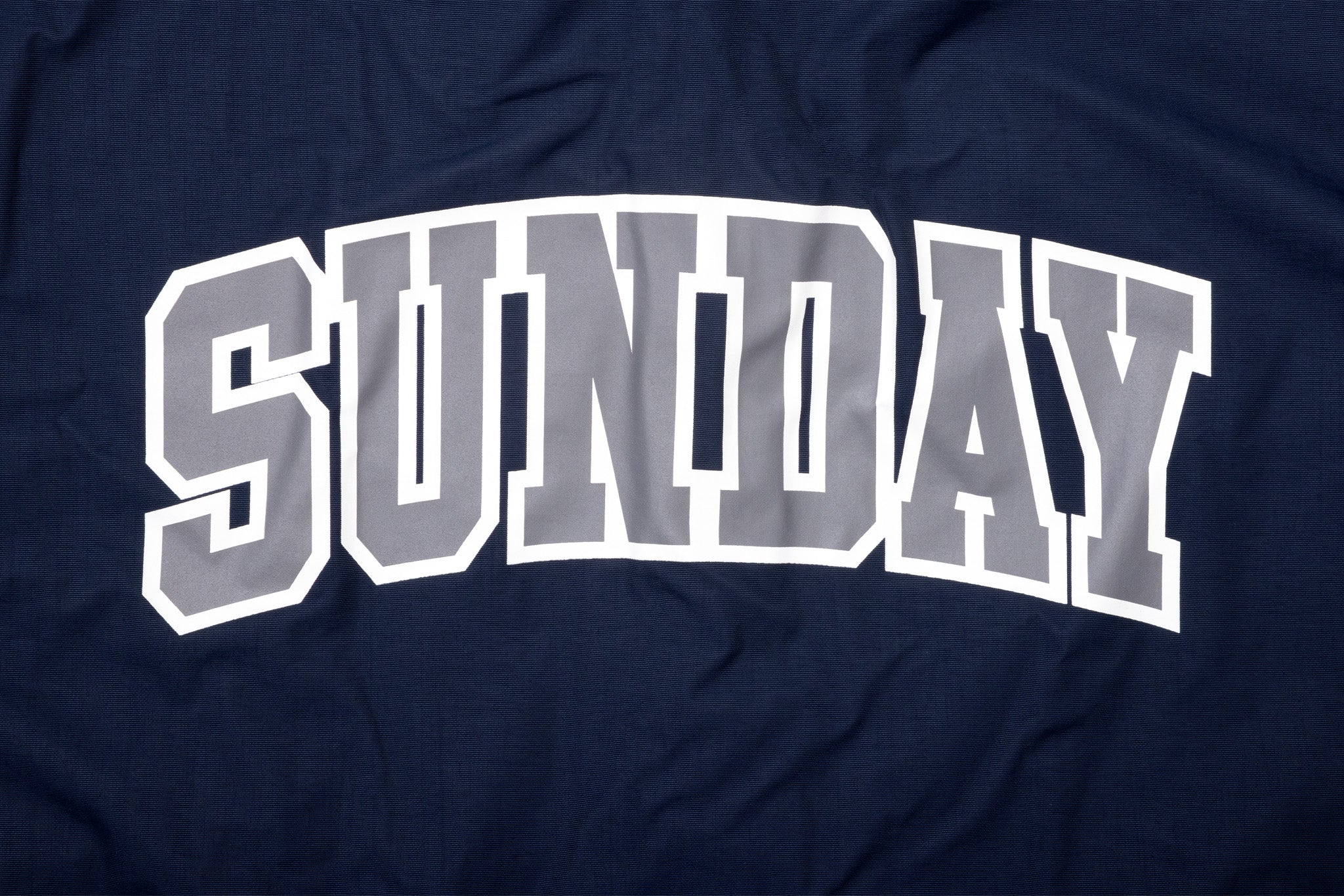 Sunday Blockhead Windbreaker Anorak Jacket (Navy with Gray/White Ink)